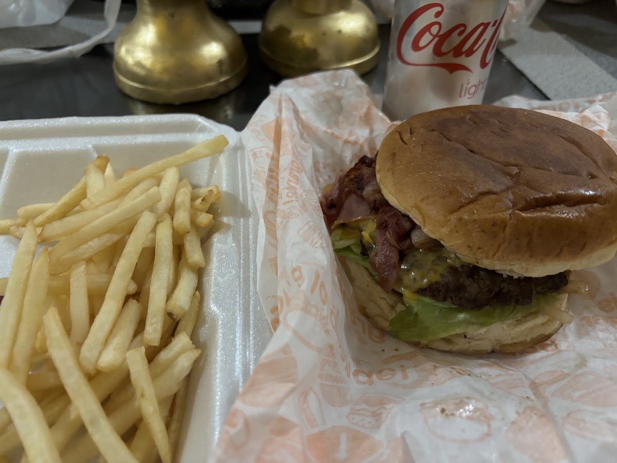 Had the cheeseburger with bacon which was very good. The burger was large and filling. The lettuce, tomato and avocado were all very fresh. The hamburger meat was juicy with very good flavor, and the cooked onions topped it off just perfectly. The prices are very good and you can order it as a combo with fries and a can of soda. My husband had the hamburger with “salchicha” aka hot dogs, and he was very pleased with his choice. He also enjoyed the flavor and was surprised at the low price. We ordered the items to go. The waitress was very kind, patient and helpful as we were undecided as to what to order. Overall we were pleased with the quality, the taste, the price and the service.